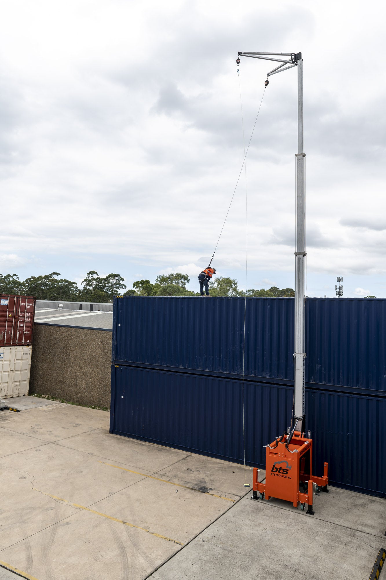 The BTS 14m AirHook Max PRO Portable Overhead anchor provides up to two people working at heights with independent overhead anchor points.