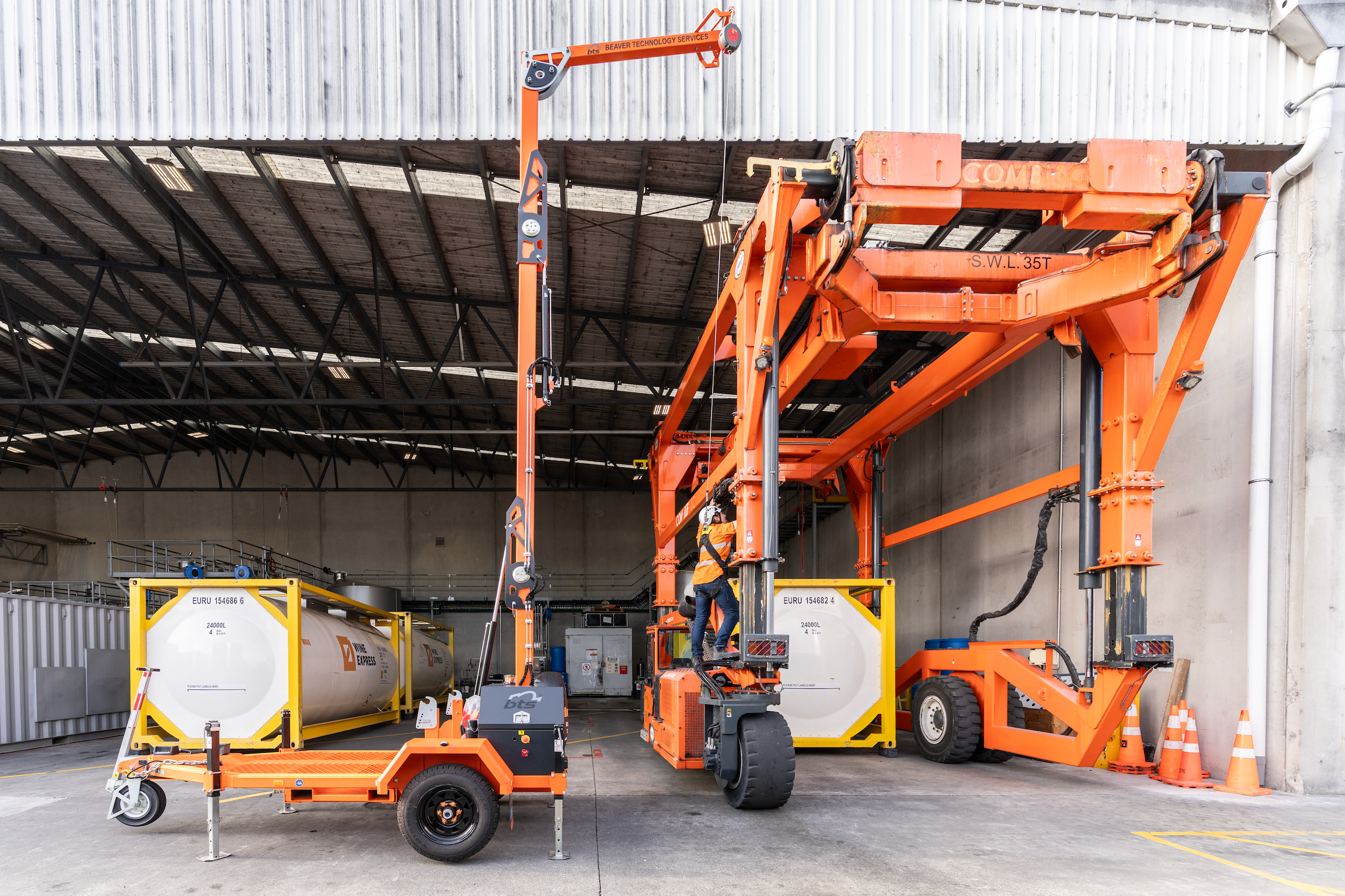 The BTS AirHook Trailer is a complete overhead fall protection system that complies to Australian & New Zealand Standard AS/NZS 5532:2013 and is mounted on a tow-able road registered trailer suitable for all road conditions.