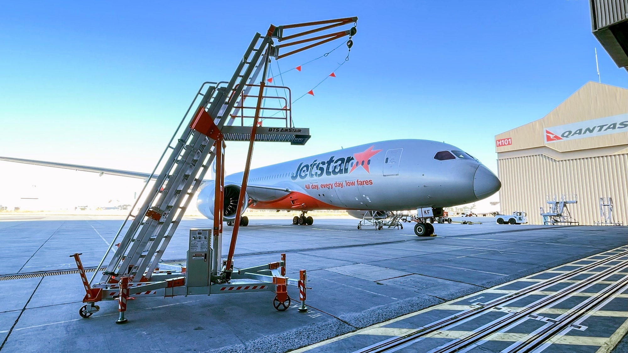 The AirStair Free Standing Access Stair System is ideal for use within the aviation industry as an overhead fall protection package in maintenance environments where engineers are constantly combating the issue of finding a solution for safe means of access and egress whilst working with a variety of aircraft with varying heights.