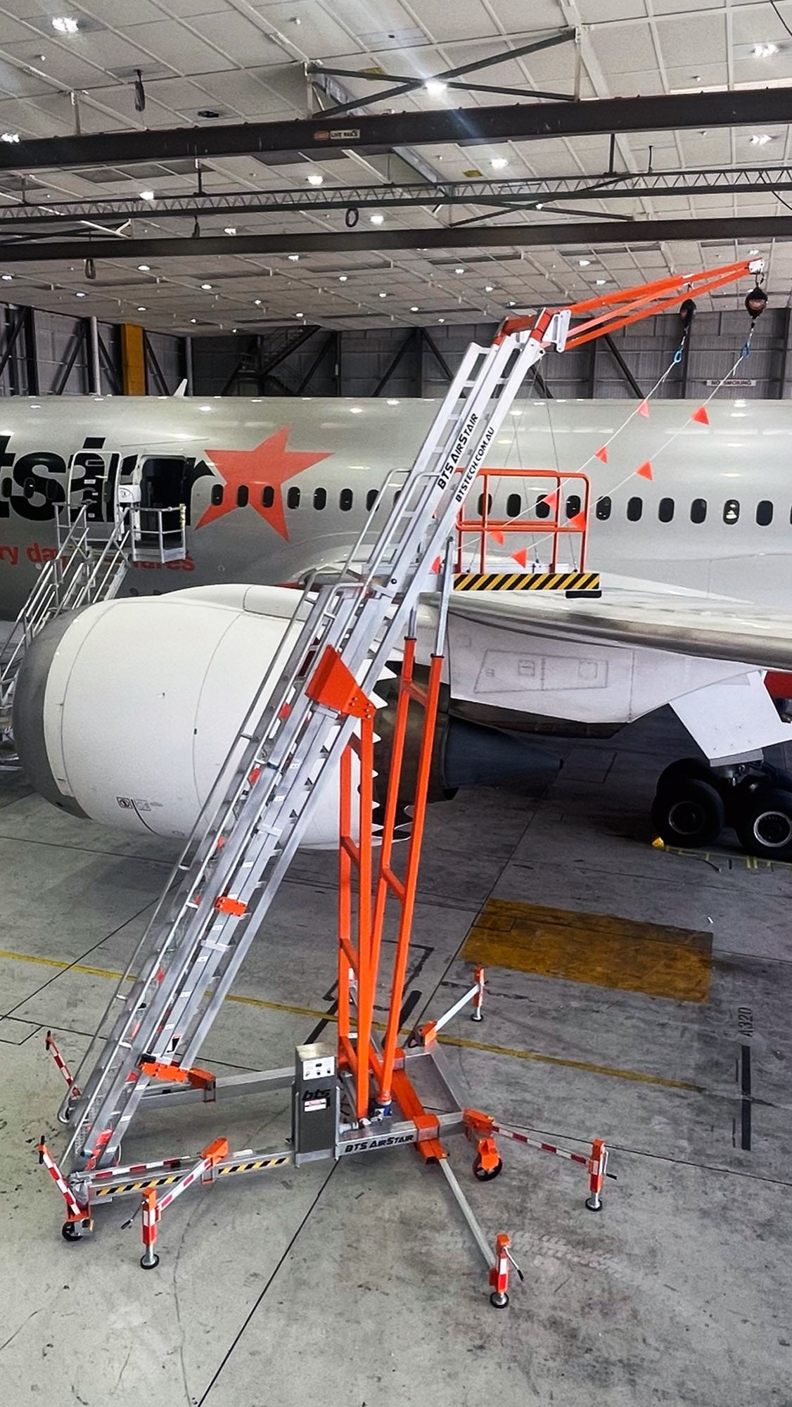 - The AIRSTAIR provides two (2) users with a portable means of accessing areas on multiple aircraft types via a full stairway set-up and provides overhead fall protection when working on the aircraft (from the ground to the work area).