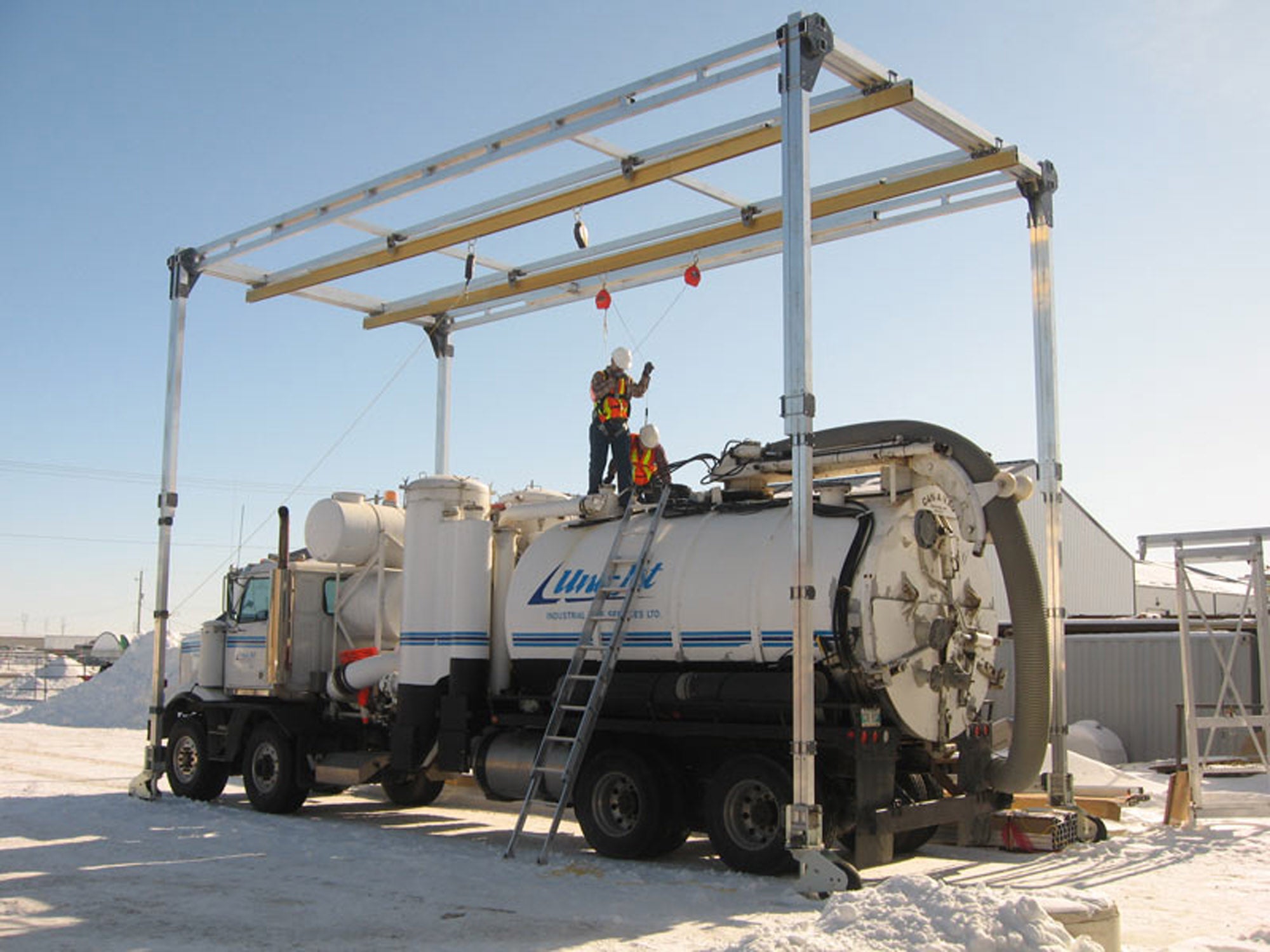 These systems slide into position over equipment or other equipment being accessed, and provide ground-up fall protection for your elevated work activities. The built in horizontal rail affords the simplicity of a rail-and-trolley system while allowing users a full range of motion over the work area, keeping your workers safe without interfering with their jobs.